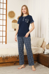 Kadın Pijama Takımı-Menekşe Kumaş-3 Düğmeli-Yaka Baskılı-12606SF
